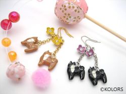 2018年の干支「戌」チャームのピアス・イヤリングです。春の予感を感じる可愛いお花をワンポイントでプラスしました。