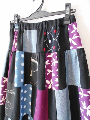 こんな着物スカートも。パッチワークで作りました。