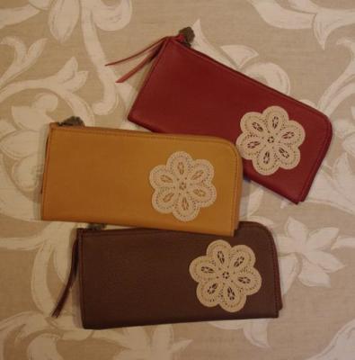 L字型のファスナー財布はコの字型よりも開け閉めしやすく、使い勝手が良い人気のデザイン。サイズ:ヨコ20×タテ10×マチ1.5cm 本体素材:牛革×金具(アンティークカラー)×コットンレース 内装生地:ポリエステル・綿 日本製