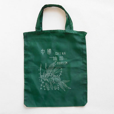 金魚の図案がなんとも中国的な、レトロナイロンバッグです。ペラペラに薄いため、透け感あります。縦37×横33×マチ3.5cm