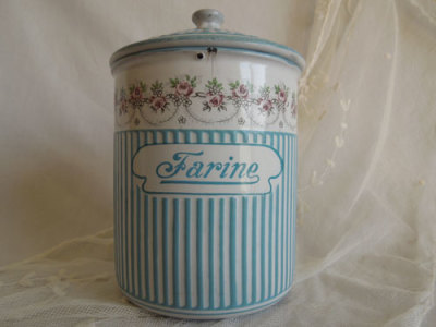フランスより届いたBB社のローズバンドホーロー キャニスター"Farine"(小麦粉)。