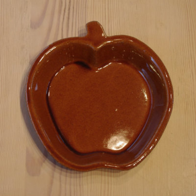 オーブンにも使える耐火土を使って製作した「りんご皿」です。サイズ:たて17.5×よこ18.5×高さ3.5cm(へた部分を含む縦:19cm)よしざわ窯 陶器 益子焼 日本製
