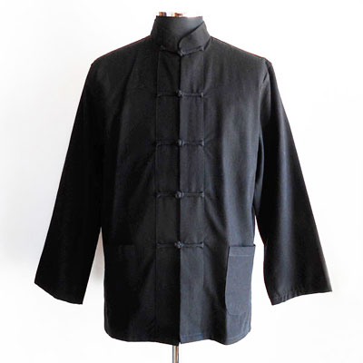 「老粗布」と呼ばれる、昔ながらの生地で作られた、メンズ長袖チャイナです。目が詰まっていて厚さがあり、やや重みがある綿素材です。中国ものにしては、チャイナボタンはきっちり編まれていて、縫製は丁寧だと思います。