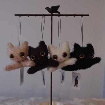 menotte ムノットとは小さな手という意味です。子ねこの小さな手は好奇心でいっぱい、そんな小さな手に魅せられて生まれてきました。タータンチェックのスカーフがおしゃれでしょ。どこにでもいっしょに行けるようにヒモがついています。本体サイズ 約W100×D110×H60mm 主素材 ポリエステル等