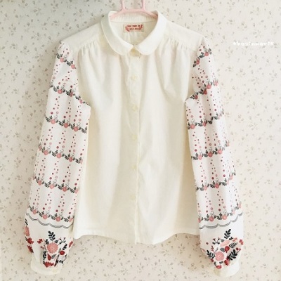 フラワーボーダー柄の袖に うっとりしちゃうロマンティックブラウス。
