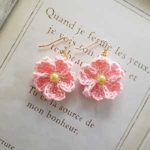ふっくら桜のニットモチーフピアス
