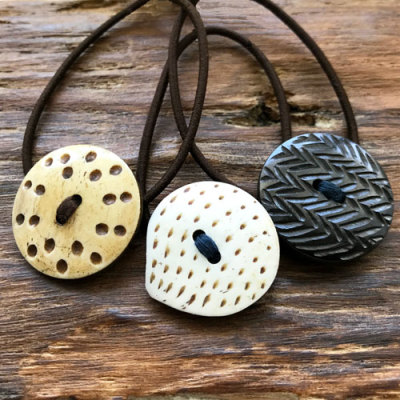 牛骨からつくられた彫刻が素敵なヘアーゴム。型抜きした牛骨に1つ1つ丹念に手彫りにて模様が刻まれています。自然の中からインスピレーションされた...、味わい深い独創的な模様が彫刻されています。