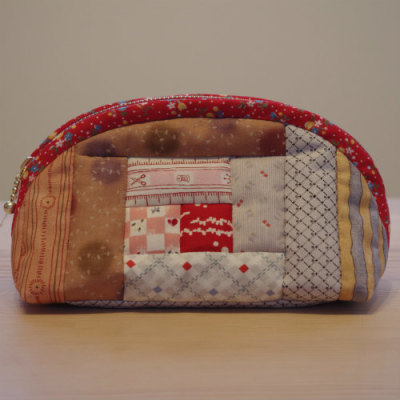 パッチワークキルトのポーチ49です。小さいですが、幅もマチもあるのでいろいろと収納できます。お出かけのお供にどうでしょう♪店主ぷぅが作ったオリジナル商品です(^^)