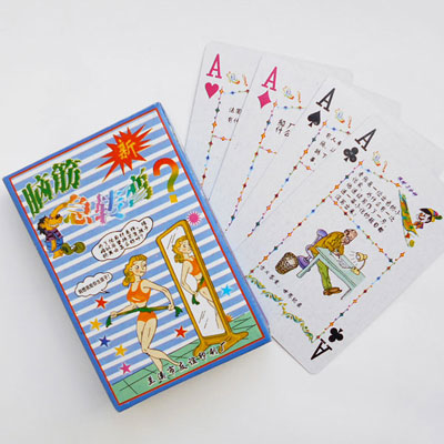 1枚1枚に中国語のクイズがついた、脳トレトランプです。複雑な文章ではないので、中国語学習にも役立ちそうです。ケース:縦8.8×横5.8×幅1.7cm、トランプ:縦8.6×横5.6cm