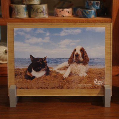 アクリル板と裏板の間の写真を容易に取り替えることのできるモダンなフレームです。A6サイズ。絵はがきを入れると写真のようになります。(絵はがきはついていません。)W240×D82×H180mm(脚サイズも含む)・生産地:日本 ・素材・成分:MDFラワン材 アクリル板