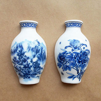 花瓶の形をした、陶器製のマグネットです。牡丹の花や山水画風の、中国的な絵柄がプリントされています。口に穴があいているので、小花などを挿したりできます。高さ7.7×横幅4.5×厚さ2.2cm