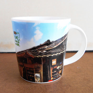 風情ある古い街並の写真がプリントされた、陶器マグカップ再入荷しました。口直径8.5×高さ9cm(持ち手除く)