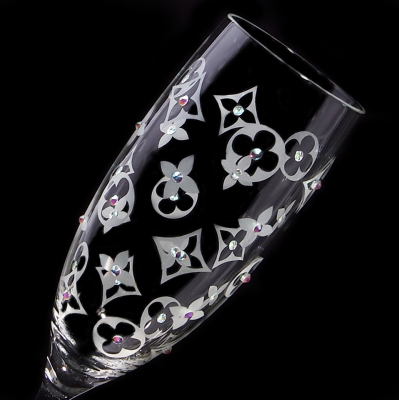 煌めくスワロフスキー社のクリスタルでデコレーションを施したシャンパングラス。存在感溢れるモノグラムのモチーフが個性的。ゴージャスな雰囲気を楽しみたい方にもピッタリのアイテムです。