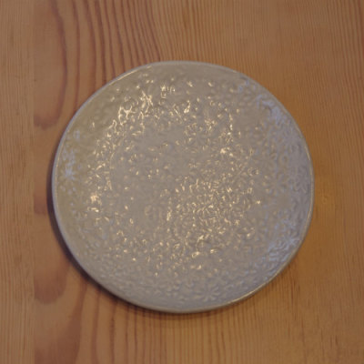 春季限定製作の、花畑をイメージしたお皿です。色は黒土に白い釉薬をかけた、ツヤのある「ホワイトグレー」。サイズ:Φ16cm×高さ2cm よしざわ窯 陶器 益子焼 日本製