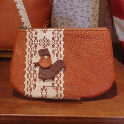 幅広レースの上のリスがちょこっとかわいいコインポーチ、コインだけでなく、カード入れや化粧ポーチとして使えます。うち布はボーダー柄コットンです。サイズ:ヨコ14.5×タテ10cm 素材:牛革×麻レース 日本製