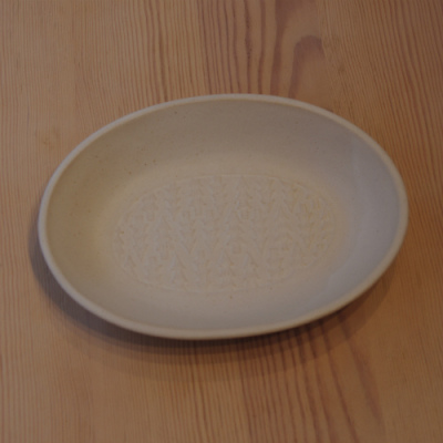 平面部に、カクカクとした線の凹凸で表現した木を並べてデザインした「森の」シリーズです。色は「ホワイト」で仕上げました。サイズ:縦16×横21.5×高さ4cm よしざわ窯 陶器 益子焼 日本製