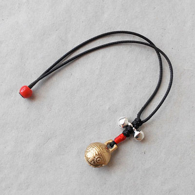 パカッとお口を開いて魚のようなお顔をしていますが、実は虎だという真鍮の鈴がついた、バッグチャームです。額には福の字も刻まれて、縁起の良いモチーフとなっています。コードの長さ:11.5cm、鈴:縦1.3×横1.4×幅1cm
