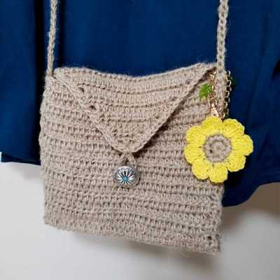 麻のポシェット ひまわりバックチャーム付き