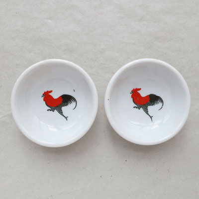 中華食器でおなじみの、おんどり柄の陶器小皿です。とても小さなサイズで、薬味入れ等にちょうどよいかと思います。直径6.8×高さ2cm