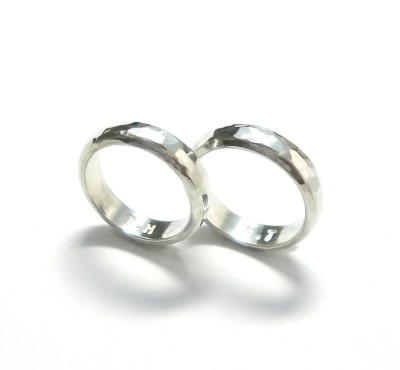 オーダーメイドで制作したシルバーペアリングです。甲丸リングの表面に自作のハンマーで槌目模様を打ち込んでいます。