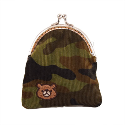 迷彩柄のコーデュロイ生地の手作りがま口財布です。