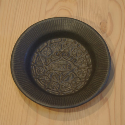 色合いとクッキー模様が、どこかアンティークの雰囲気が感じられるような器です。色はツヤを抑えたチャコール。サイズ:Φ13.5×高さ2.5〜3cm よしざわ窯 陶器 益子焼 日本製