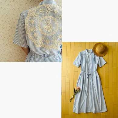 背中の繊細なレースドイリーに見惚れるワンピース。