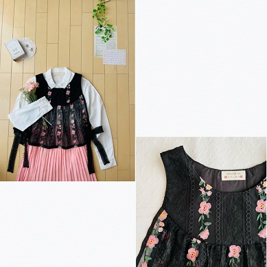 繊細なレースの透け感と あざやかに咲く刺繍の花が