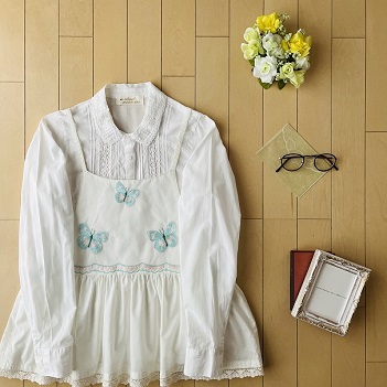どの角度から見ても ぬかりなく可愛いスカラップレース襟のブラウス。