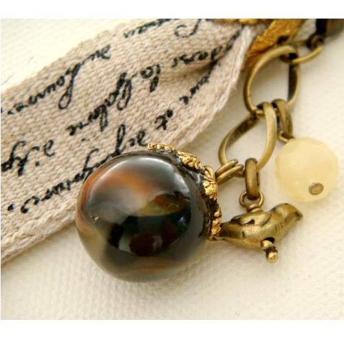 商品紹介: ** シックな色合いのビー玉が添えられた、リネンリボンのストラップ。ビー玉はストラップから取り外して、ネックレスとしてもお楽しみいただけますよう、ネックレスチェーンをお付けいたしております **