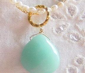 を合わせ二連にして、アマゾナイトのマロンカットをトップにしました。