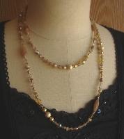 商品紹介: ブラウン系のビーズをタップリと使用したロングネックレスです。