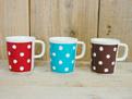 商品紹介: メラミン素材のドットがかわいいマグカップです!おやつの時間やお子さんにおすすめですよ〜 カラーはレッド・ブルー・ブラウンがあります  *電子レンジ・オーブン・食器洗浄器・乾燥機などはお使い頂けません