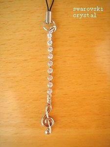 商品紹介: ト音記号がついた、ラインストーンの素敵な携帯ストラップです。音楽といつも一緒に♪