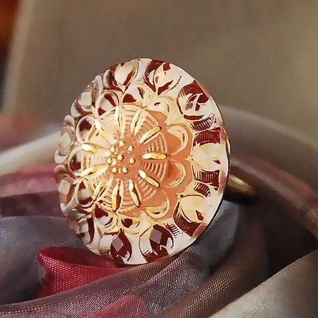 商品紹介: 花モチーフの円形パーツを使用したリングです。