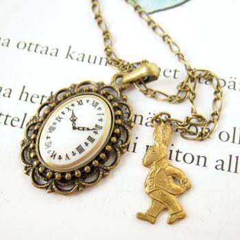 時計のカボッションとウサギのネックレス