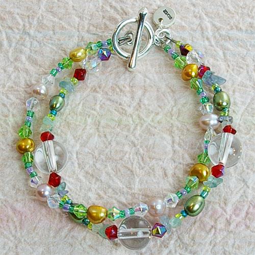 *水晶、フローライト、淡水パール、チェコガラスビーズ、ガラスシードビーズ