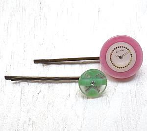 商品紹介: いろいろな国のVintageボタンを使ったヘアピンです。