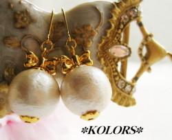 商品紹介: リボンチャームの下には大きなコットンパールがユラユラ。