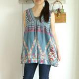 商品紹介: お花モチーフのペイズリーと小さなドットがフェミニンなVネックチュニック。
