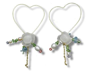 商品紹介: 淡いピンクのバラにペリドット、チェリークォーツ、アクアマリン、淡水パールを組み合わせて、春らしい色合いに仕上げました。全体/約7.9×3.8