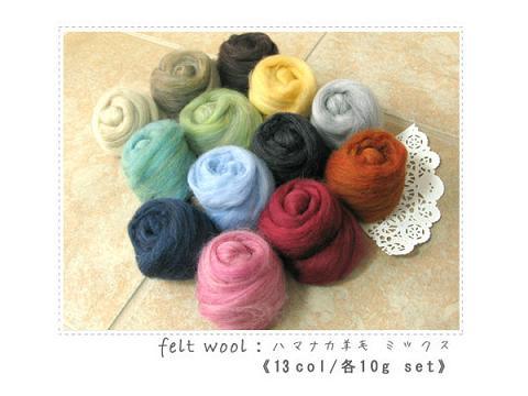 【ハマナカ フェルト羊毛】羊毛フェルト〔ミックスシリーズ*13色/各10gセット〕