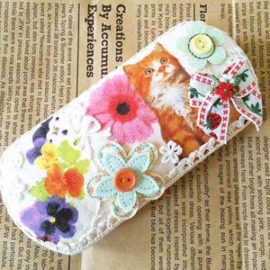 布素材でケースの上半分をコラージュ。程よく立体的にデコしました。