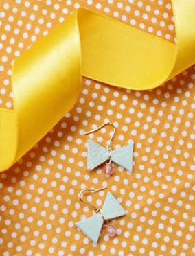 商品紹介: レザー素材のリボンモチーフに、ピンクのジュエルを一粒零した、甘辛ミックスなデザインのピアスです。
