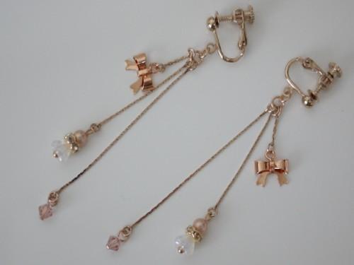 リボンと天使のゆれるイヤリング(ピンクゴールド)