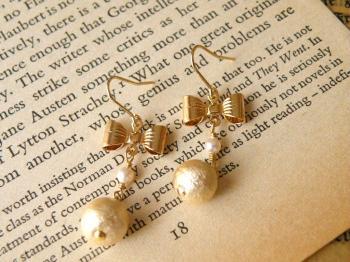 コットンパールとリボンのピアス