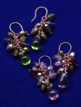 商品紹介: 房状に束ねたビーズの先端に輝く、しずく型の大粒のジュエル。ゴージャスな印象を与える、フックタイプのピアスです。