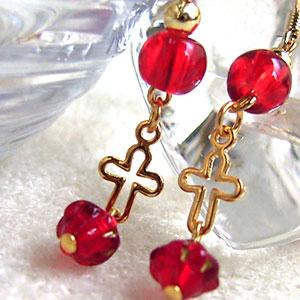 商品紹介: 赤いビーズとクロスのピアスです。