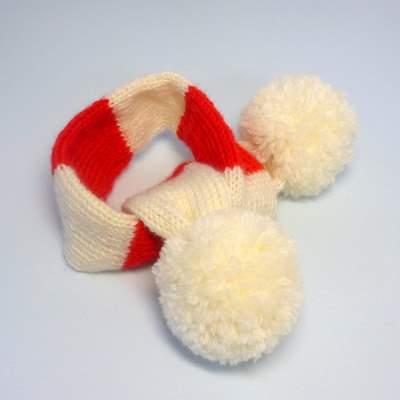 犬用手編みマフラー(ホワイトボンボン)-Sサイズ 【Scubed】