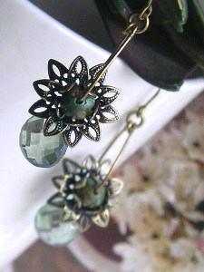 商品紹介: カットガラスとメタルフラワーのピアス♪